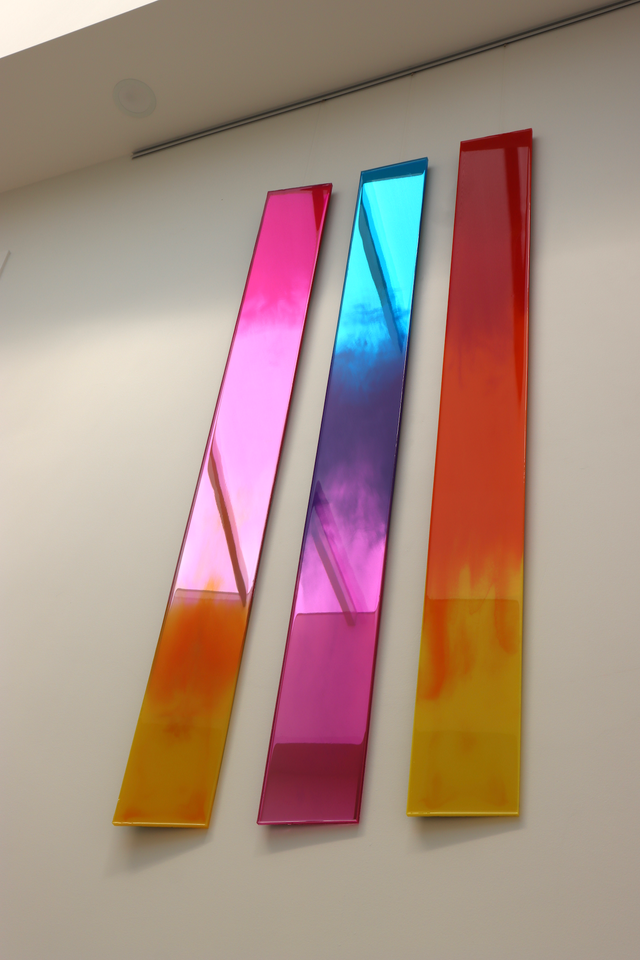 Driven to explore what lies beneath the surface of reality—seeking meaning in the unseen and the intangible—O’Neill’s abstract minimalist works, including series such as Solar Verticals, Solar Seduction, and Colour Illuminations, feature vibrant colour palettes applied to aluminium and mirrored substrates. Using pigments mixed with epoxy polymer, she creates luminous, layered compositions that capture the ephemeral qualities of light and space. In 2008, she became one of the first New Zealand artists to use resin (epoxy polymer) as a fine art medium, pioneering a new material approach that has since influenced a generation of contemporary artists.